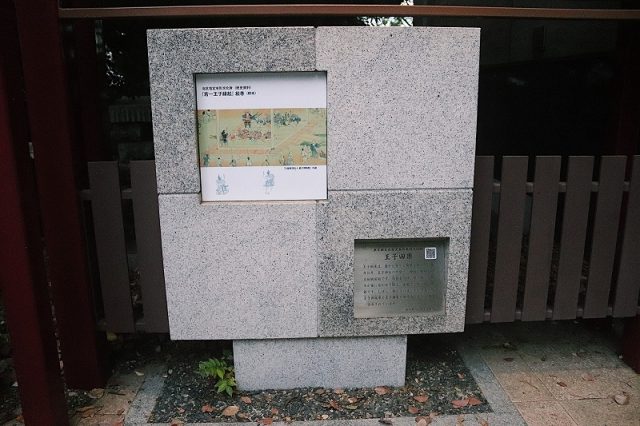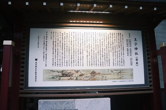 境内に入ってすぐ、王子神社に関する資料が展示されています。この資料によると、王子神社は「王子」という地名の由来にもなったそうです。