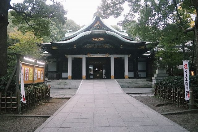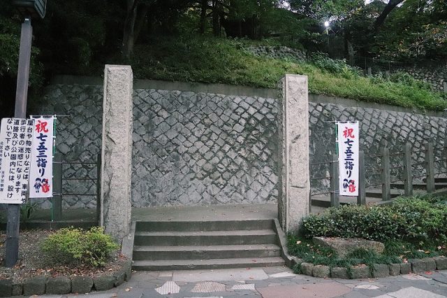 歩いていると「祝七五三詣り」ののぼりに挟まれた門が見えてきました。