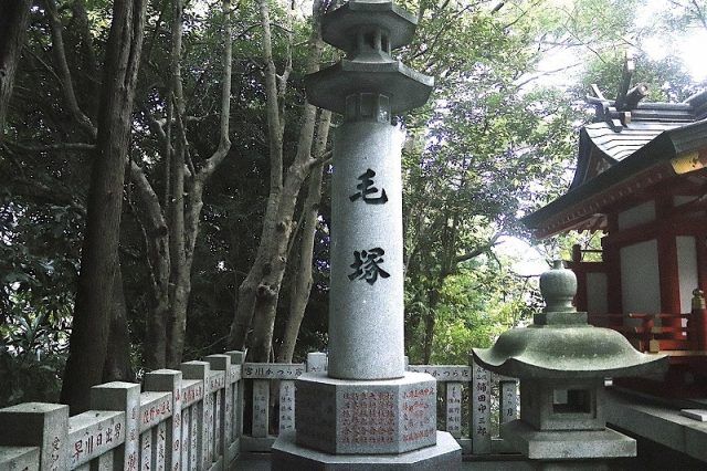 拝殿のすぐ隣には、立派な毛塚塔が建てられています。