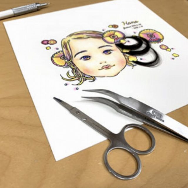 その場合、台紙に描かれている赤ちゃんも似顔絵として描かれることもあり、「世界に一つ」のファーストカットアートとしてより記念になりそうです。