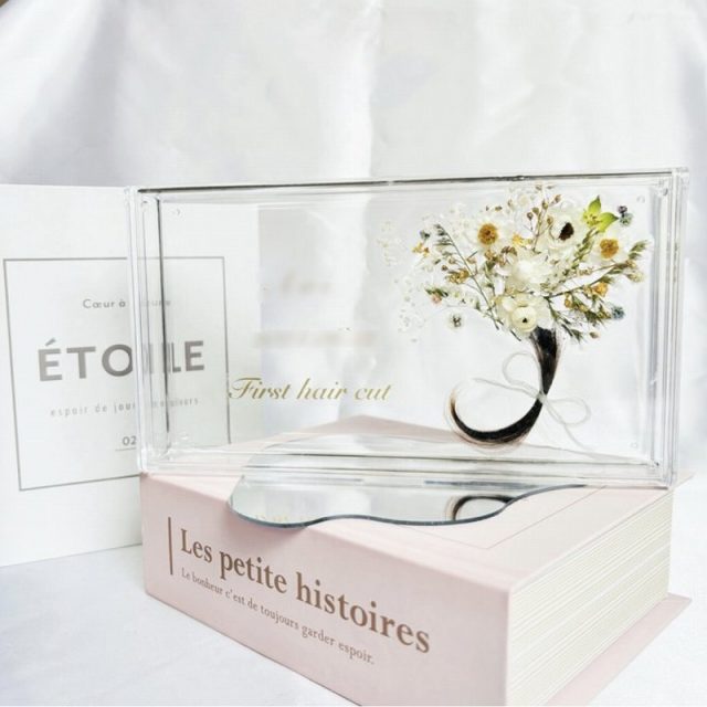 赤ちゃんのファーストカットで切った髪をインテリアとして残しておくこともできます。