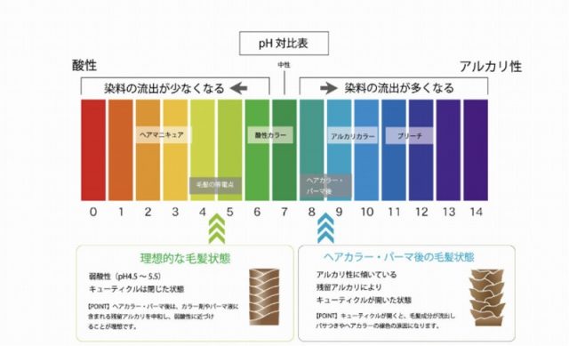 一般的に健康な髪のpHは通常4.5〜5.5の酸性の状態です。