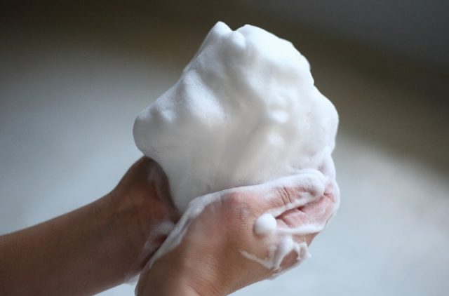 洗浄力のマイルドなシャンプーでよく泡立てて洗う