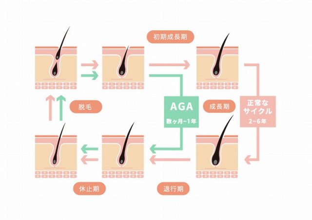 毛周期のサイクルが短くなり、早く抜け落ちたり髪の成長がきちんとされなければ、短く細い毛が増えてしまいます。