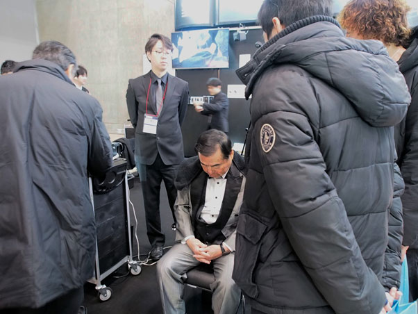数分歩くだけでも、ハンドクリームやリップクリームのテスターを展示しているブース、化粧筆の実演を行なっている会社、バーチャルメイクが体験できる展示など、様々な方面から「美容」を追求している様子が見受けられました。