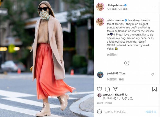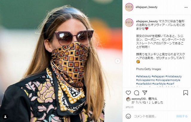 海外セレブの間ではマスクの代わりにスカーフを使うという上級テクニックが続出です。