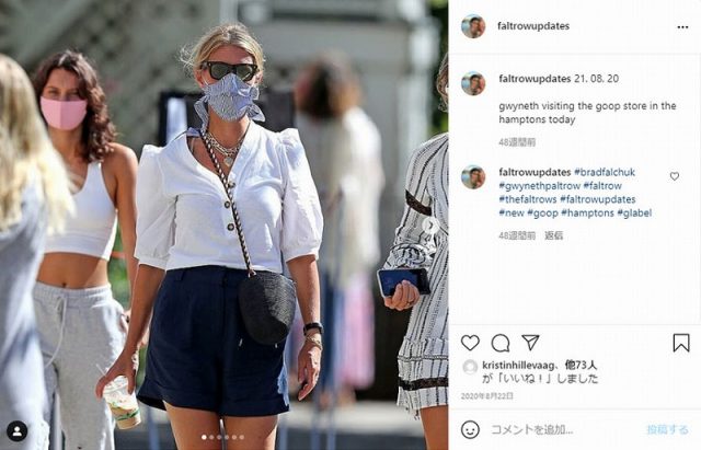 ワンポイントの遊び心をマスクでうまく取り入れるのも海外セレブならではですね。