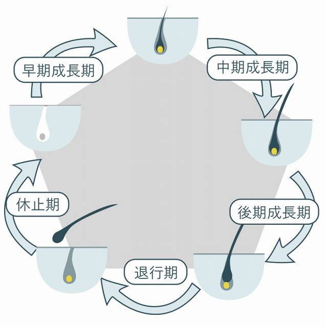 髪の成長には「ヘアサイクル(毛周期)」と呼ばれる髪が成長し始めてから抜け落ちるまでの周期があります。