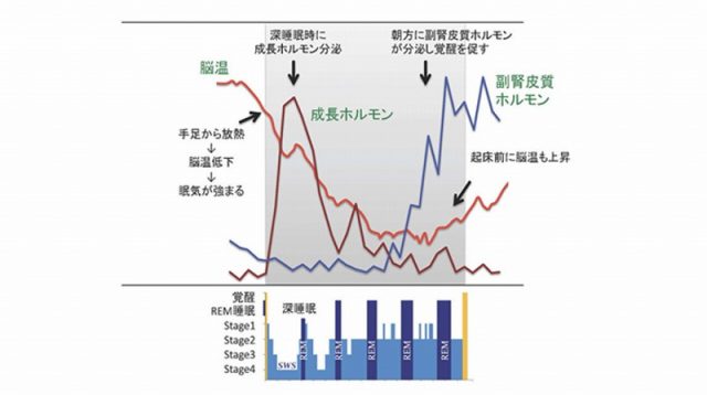 上の図を見るとわかるように成長ホルモンが分泌されるのはノンレム睡眠時の深睡眠(ステージ3)です。