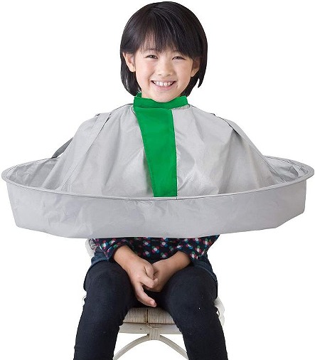 こちらのヘアーエプロンは、パッと広げてかぶるだけの簡単仕様です。