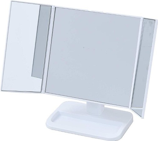 こちらの三面鏡は、ミラーを開いた時の幅が43センチと大きめながら、持ち運びも可能なサイズです。