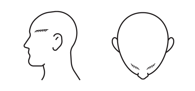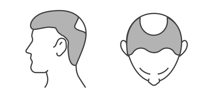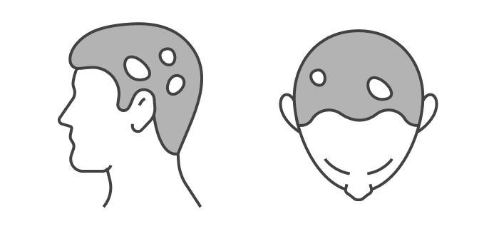後頭部から側頭部の生え際に沿って、蛇のように脱毛が広がる症状。完治するのに比較的時間がかかり、数年かかることもあるタイプの脱毛症です。