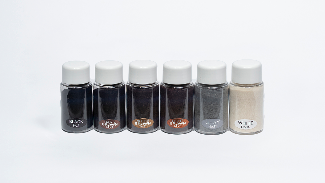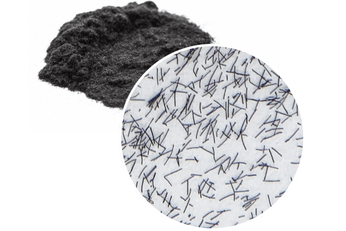 また、独自の製法でランダムにカットされた植物系繊維でできており、長さが異なるだけでなく、直毛・縮毛に加工された繊維が絡み合いながら、静電気によって毛髪に付着することで立体感を演出します。