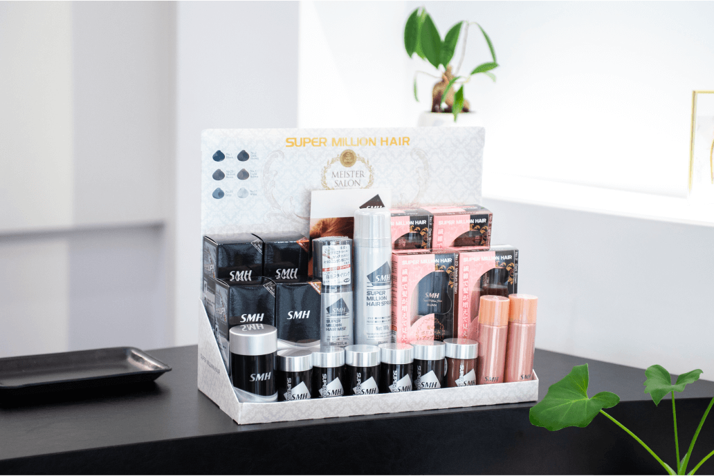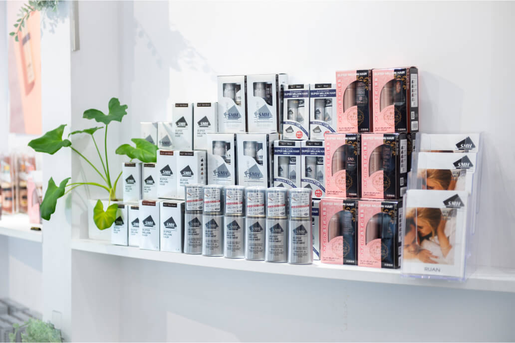 アンテナショップでは、スーパーミリオンヘアーの全商品・全カラーを常時お取扱しております。使用するサイズや色合いでお悩みの方は実際に店頭でお確かめ下さい。お近くにお越しの際は是非アンテナショップにお立ち寄り下さい。