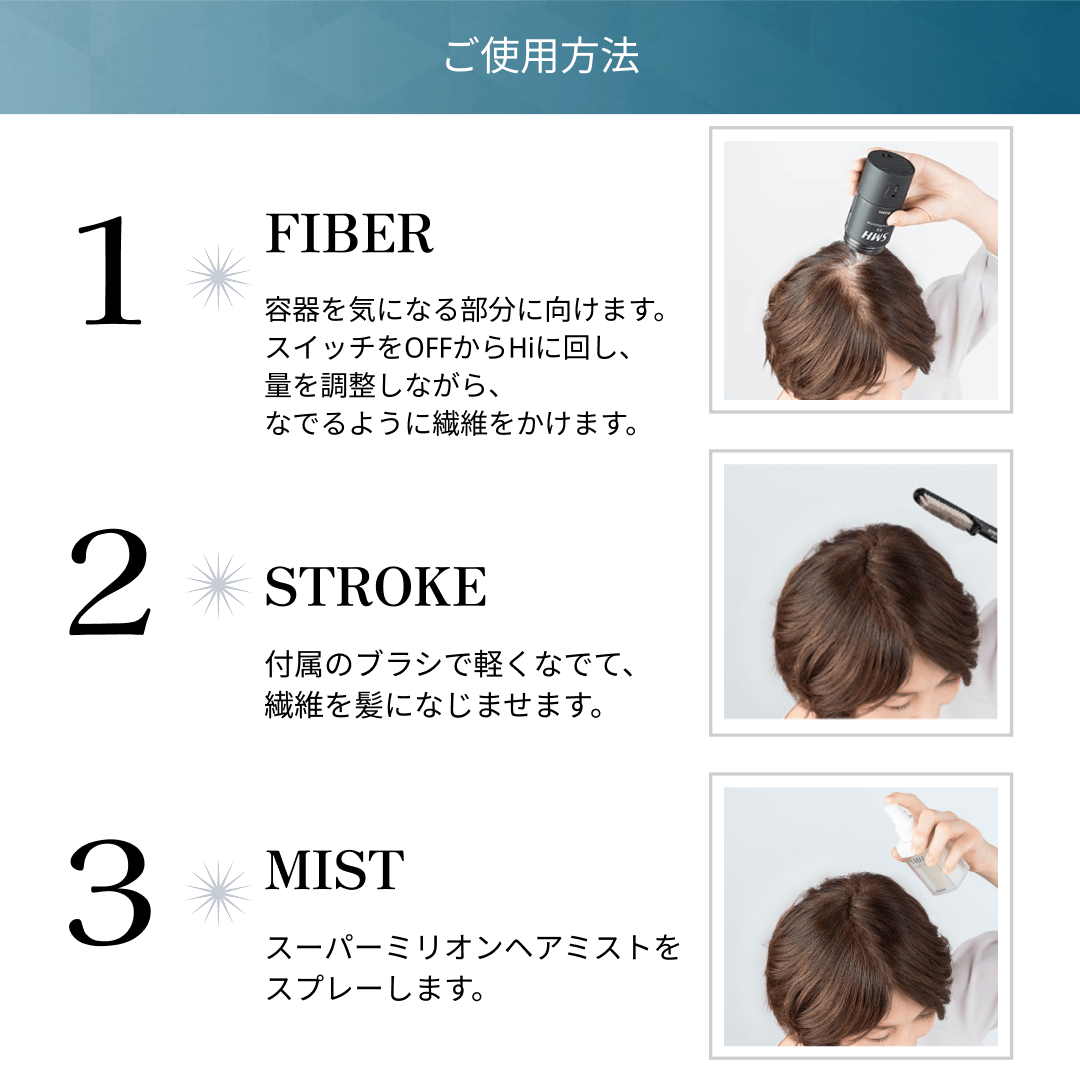 自動で簡単にムラなくスーパーミリオンヘアーEXをふりかけることができます。
