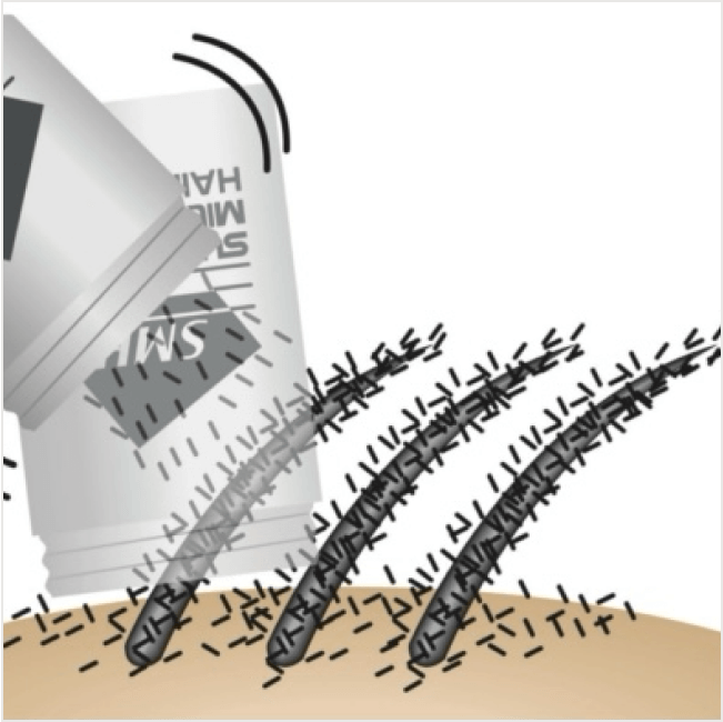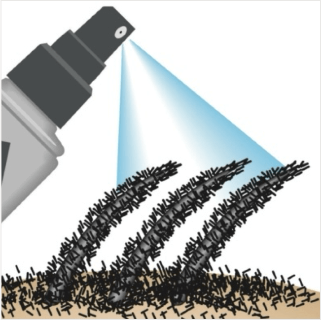 独自の製法でランダムにカットされた植物系繊維でできており、長さが異なるだけでなく、直毛・縮毛に加工された繊維が絡み合いながら、静電気によって毛髪に付着することで立体感を演出します。